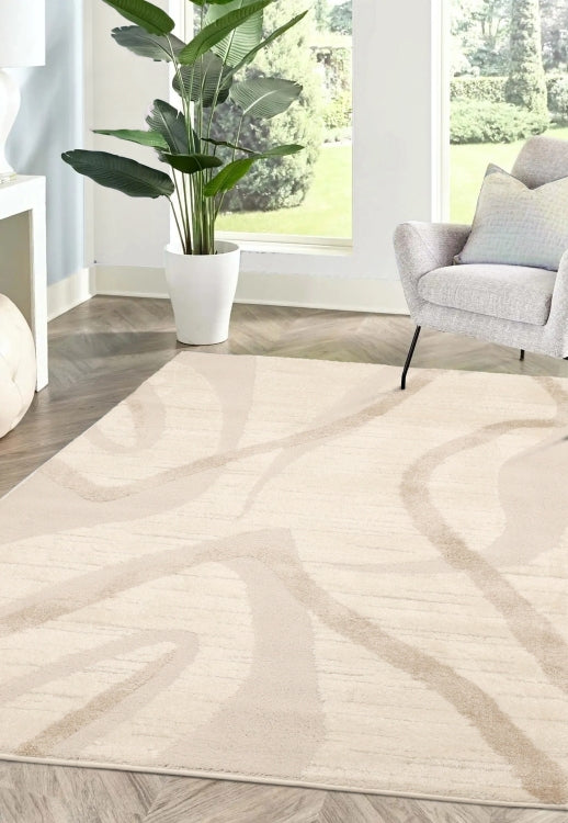 The AVA Wave Cream rug by Melrose Interiors features a high-low texture with a blend of neutral tones and abstract designs, adding a refined minimalist touch to any indoor space. Crafted with a durable machine-woven construction, it combines 60% polypropylene and 40% polyester for easy maintenance and lasting comfort. With a 5 mm pile height, this rug is both stylish and practical. For added safety, using a rug grip is recommended to keep it securely in place.