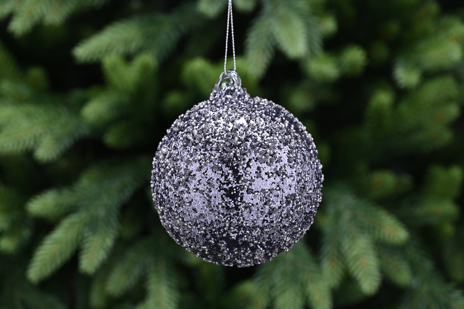 Add a touch of elegance to your holiday décor with this 10cm Festive Silver Encrusted Glass Bauble. Its delicate silver detailing catches the light beautifully, making it a perfect ornament to enhance your Christmas tree or festive displays. Crafted from glass, it combines classic charm with shimmering sophistication, helping create a warm and inviting atmosphere for the season.