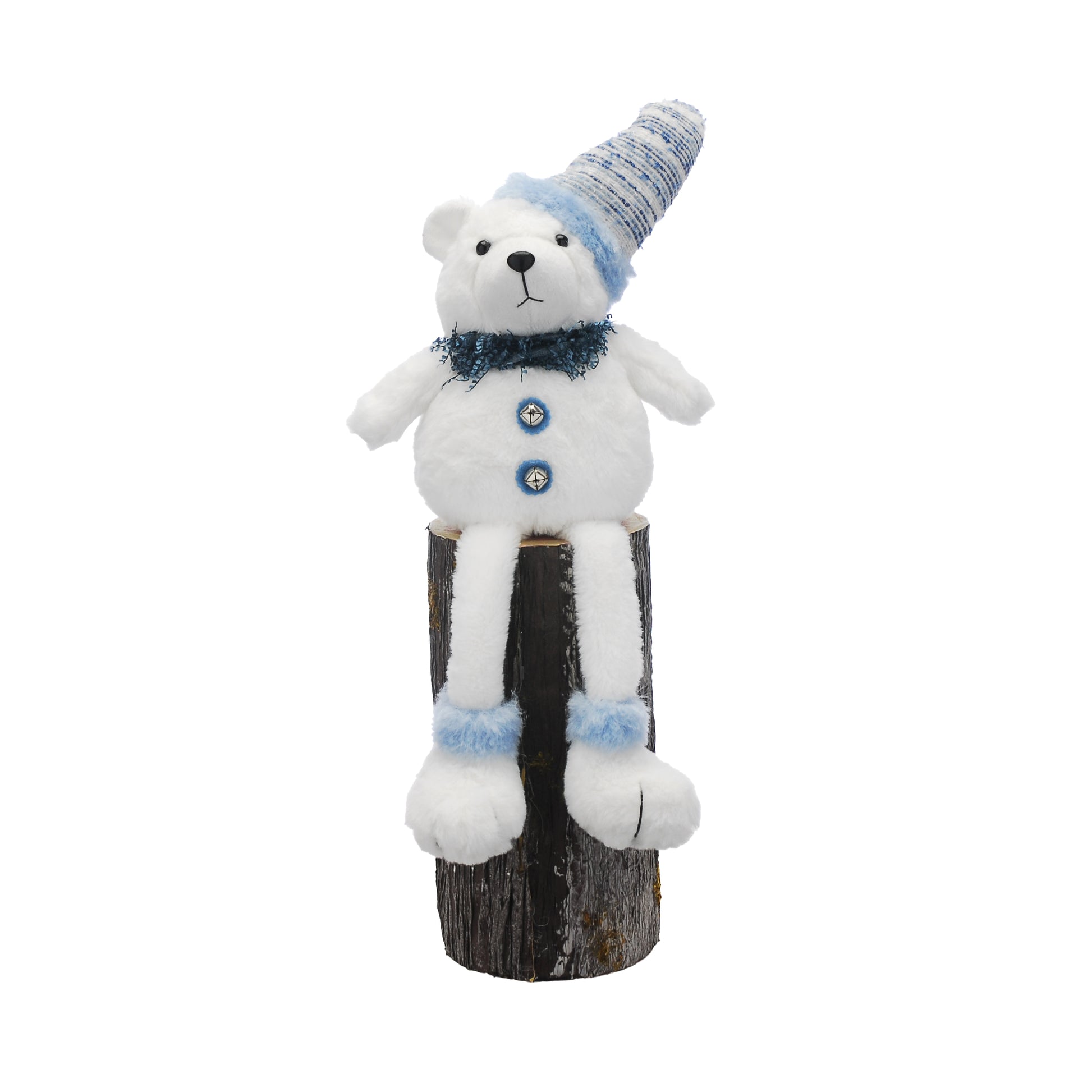 Festive White Plush Dangly Legs Bear with Blue Scarf