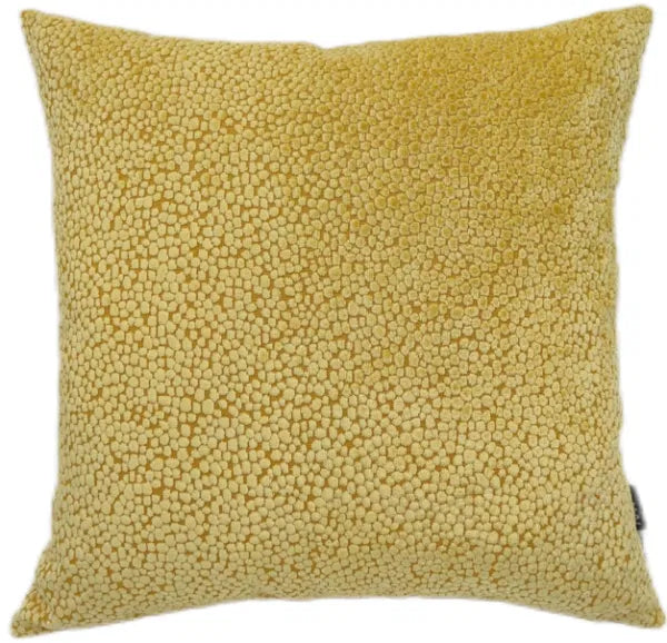 The Malini Large Bingham Gold Cushion features a luxurious cut velvet fabric with elegant gold dots, blending 54% polyester and 46% viscose for a soft, durable feel. Measuring 56 x 56 cm, its warm yellow tones add a cheerful touch to any room. Designed for easy care, this cushion requires dry cleaning only to maintain its vibrant look and texture. Perfect for enhancing comfort and style in your living space.