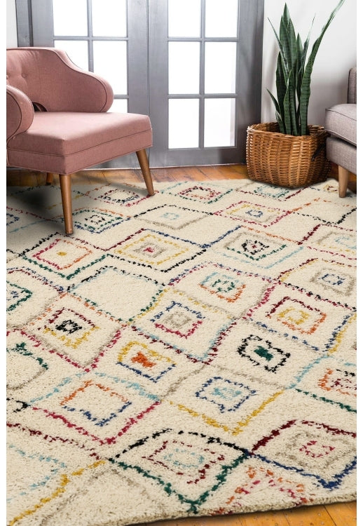 The Noble Diamonds Brights rug brings warmth and vibrancy to any indoor space with its rich, colourful design and cosy 30mm pile. Crafted from 100% polypropylene, this machine-woven rug offers a soft texture that is durable and easy to maintain. Its non-shedding construction ensures long-lasting beauty, making it a practical and inviting addition to your home. Designed by Melrose Interiors, it combines style and comfort effortlessly.