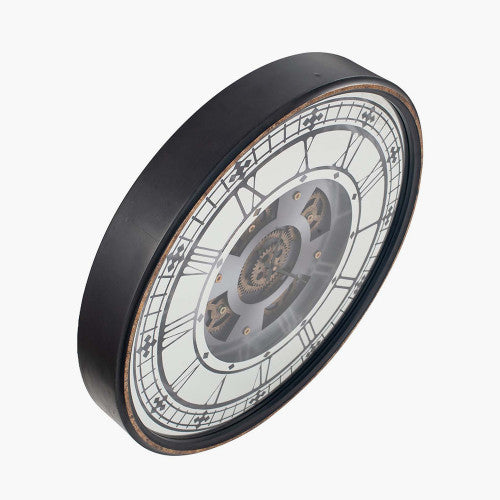 Pacific Antique Gold Wood and Mirror Working Cog Round Wall Clock