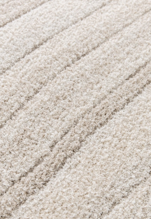 The PURE WAVE rug from Melrose Interiors combines microfibre and shrink polyester yarn in a refined 14mm pile, creating a subtle 3D texture in neutral tones. Designed for indoor use, it is non-shedding and easy to maintain, making it a practical choice for any room. For added safety and stability, using a rug grip is recommended. This machine-woven rug offers both style and durability to enhance your living space.
