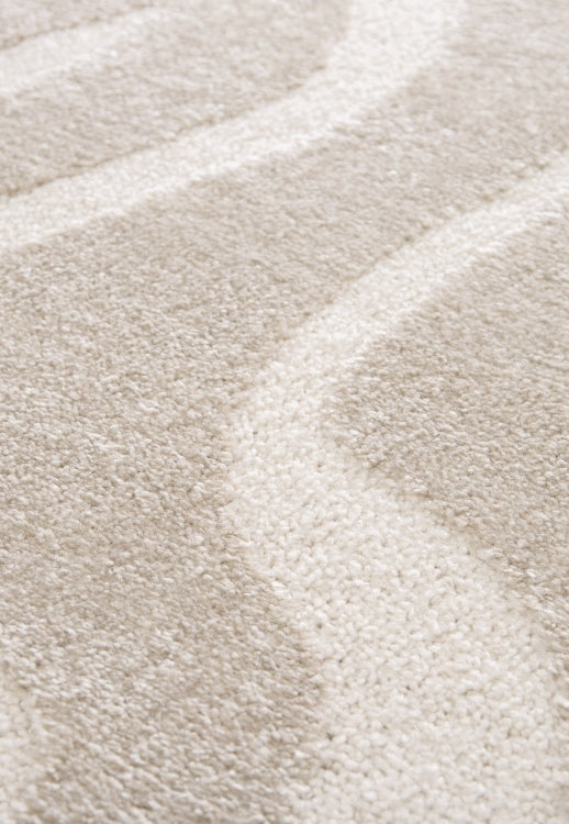 Experience comfort and style with the REEF RIPPLE NATURAL rug from Melrose Interiors. Its unique 9 mm high-low pile blends soft polypropylene and smart shrink polyester, creating a subtle 3D effect and a gentle feel underfoot. Crafted with high-quality machine-woven construction, this rug is durable and easy to maintain. For added safety and stability, using a rug grip is recommended. Perfect for enhancing any room with both texture and practicality.