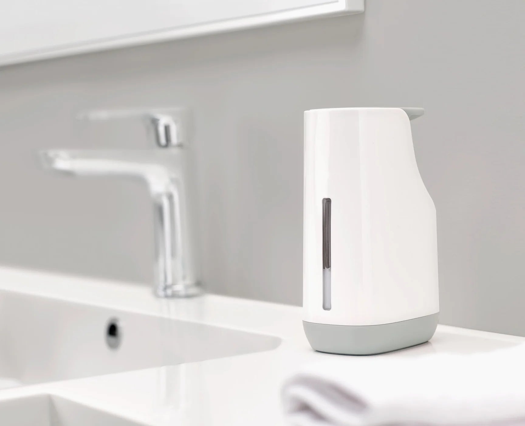 The Slim™ Light Grey Soap Pump offers a space-saving design that fits neatly by your sink without sacrificing capacity. Its slim footprint and large 350ml (12.3 fl oz) reservoir ensure you have plenty of soap on hand. The fill-level window lets you easily monitor soap levels, while the large, easy-push pump head and non-drip nozzle provide convenient, mess-free use every time. Ideal for keeping your sink area tidy and efficient.